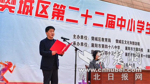荆楚网(湖北日报网)消息(通讯作者:付晓芳、聂志鹏、杨悦)10月22日,襄阳市樊城区第22届中小学运动会开幕式在襄阳市第四十八中学操场隆重举行。本次运动会由樊城区教育局、樊城区文化和旅游局联合主办,襄阳市第四十八中学、襄阳市第四十三中学、襄阳长虹路小学、襄阳市方圆学校、襄阳市樊城区第一初级中学协办。